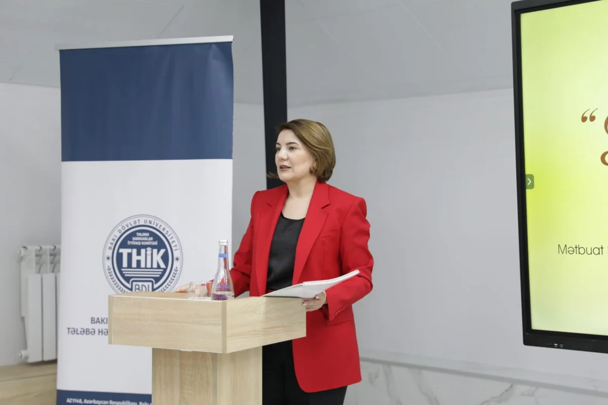 Bakı Dövlət Universitetinin (BDU) Jurnalistika fakültəsinin Tələbə Həmkarlar İttifaqı Komitəsinin (THİK) təşkilatçılığı ilə keçirilən “Danışır təcrübə” layihəsinin növbəti qonağı Mətbuat Şurasının İdarə Heyətinin üzvü, “APA Media Group”un baş direktoru, Əməkdar jurnalist Vüsalə Mahirqızı olub.