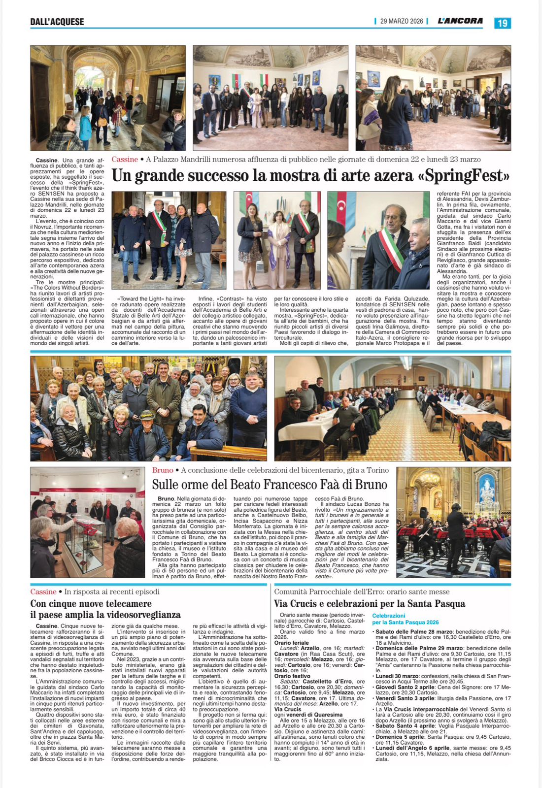 22-23 mart 2026-cı il tarixlərində Sən1Sən Beyin Mərkəzinin İtaliyanın Cassine (AL) şəhərində 17-ci əsrə aid “Palazzo Mandrilli”də yaratdığı Qalereyada növbəti sərgilər silsiləsi keçirilmişdir. Bu sərgilər “Novruz Festivalı” adı ilə Novruz Bayramına həsr olunmuşdur.