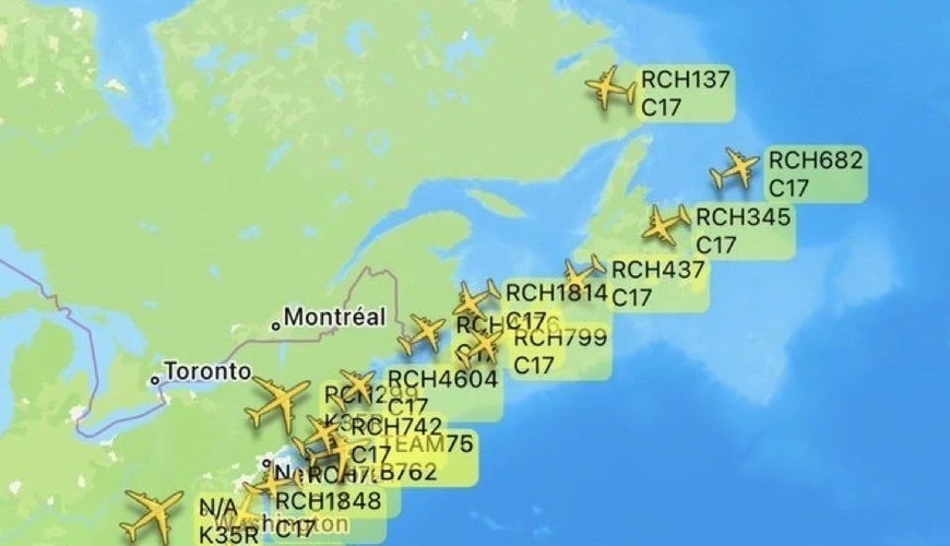 ABŞ Hərbi Hava Qüvvələrinə məxsus nəhəng “C-17 Globemaster III” hərbi-nəqliyyat təyyarələrindən ibarət böyük bir qrup Atlantik okeanını keçərək Yaxın Şərq istiqamətində irəliləyir.