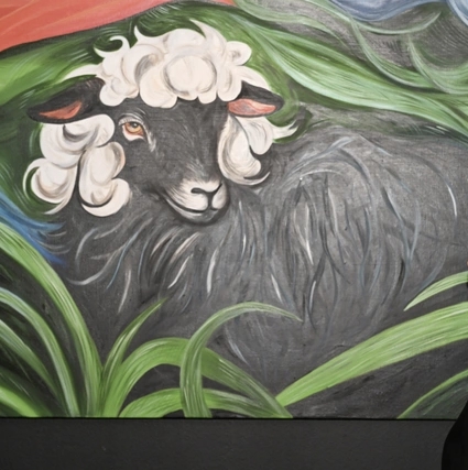 “Sərginin baş köşəsinə başı üzərində Azərbaycanın dövlət atributu üçrəngli bayrağımızı açıq-aşkar andıran təsvir olan qoyun rəsmi qoyulub. Rənglər tam da bayrağımızdakı rənglərdir. Məsələni çevirmək yersizdir. Lap mavini səma, yaşılı ot kimi düşündük… Al qırmızı dağdırmı?”
