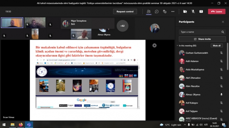 Universitetdən AZƏRTAC-a bildirilib ki, “Microsoft Teams” platforması üzərindən onlayn formatda təşkil edilən seminarda MDU-nun akademik heyət üzvləri, tələbə və magistrantları iştirak ediblər.
