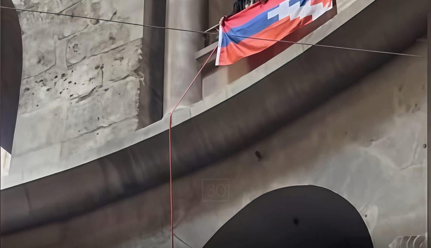 Yerusəlimdə yerləşən Müqəddəs Qəbir kilsəsində məhv olmuş qondarma rejimin əski parçası qaldırılıb.