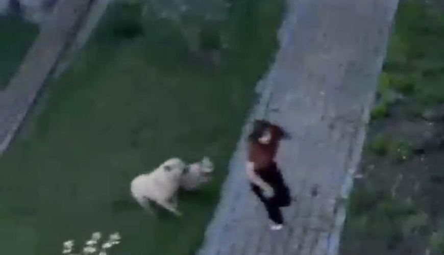 Yayılan görüntülərdən aydın olur ki, iki sahibsiz küçə iti qəfil şəkildə gənc qıza doğru qaçmağa başlayır. Gözlənilməz vəziyyətlə üzləşən tələbə çevik davranaraq hadisə yerindən uzaqlaşa və mümkün hücumdan xilas ola bilir.